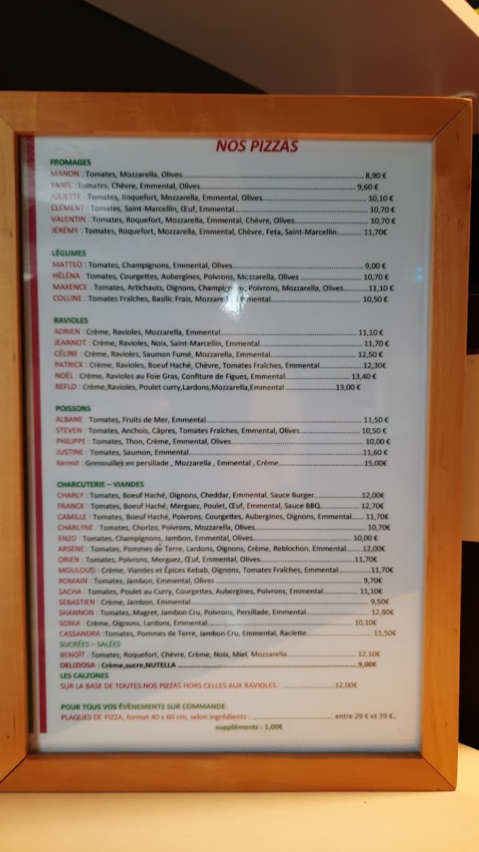 ART ET PIZZA Menu